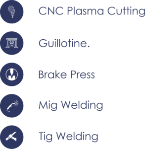 Have a look at our equipment at the moment, CNC Plasma Cutting, Brake Press, Mig Welding and Tig Welding , Guillotine.